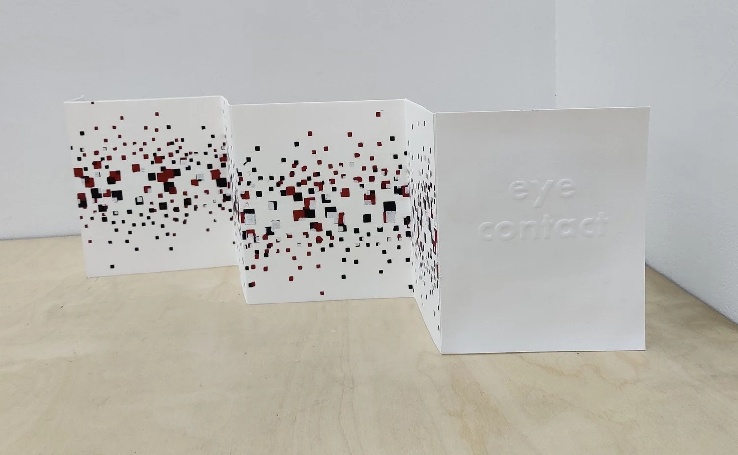 Eye Contact is a tangible representation of what it feels like to have central vision loss. The static in my central vision makes it difficult for me to hold eye contact with my loved ones, so I inevitably pretend to look them in the eye. There were two editions of this book produced in 2023 and 2024. The 2024 edition is part of the PSBA Members’ Exhibition held at the Collins Memorial Library from June 4 - August 1 and at The Evergreen Stata College from September 29 - December 20.