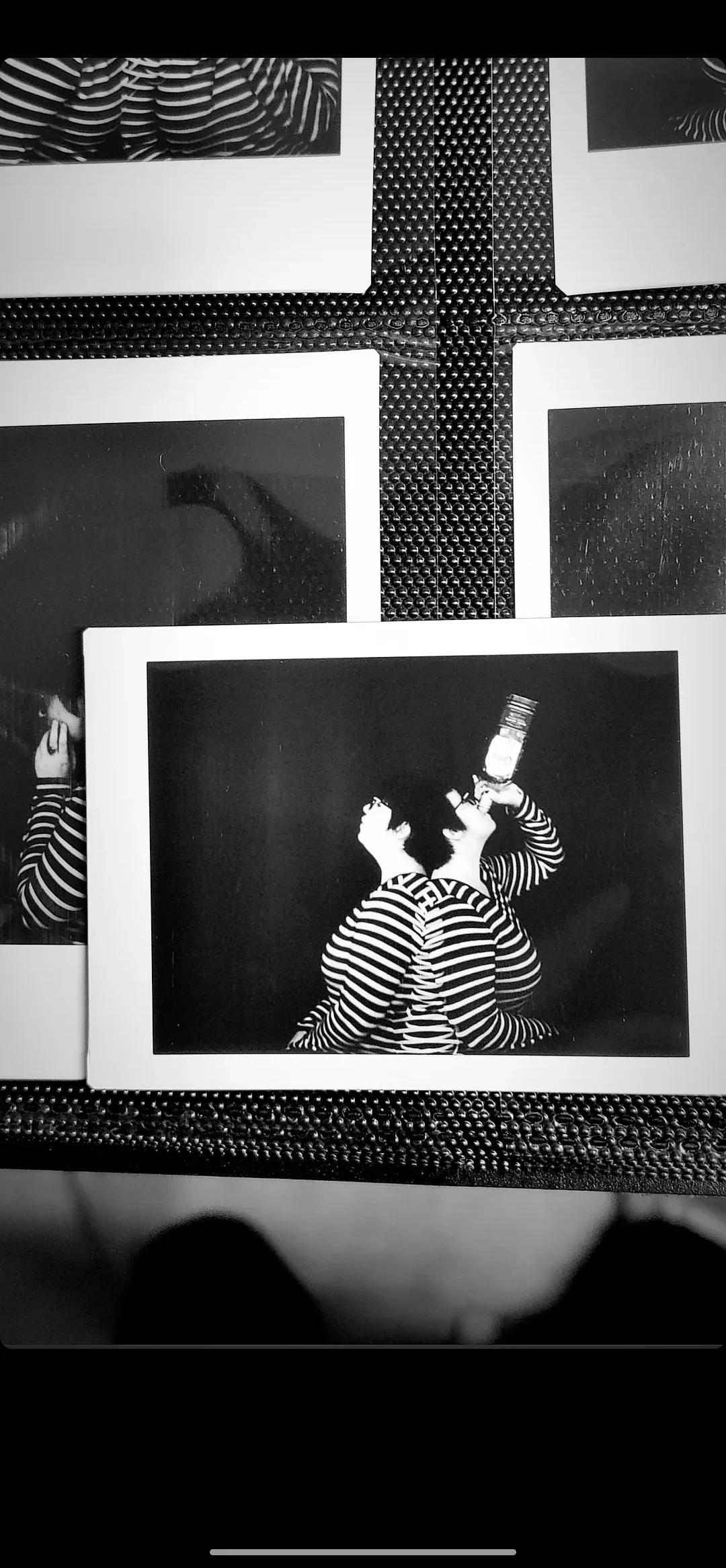 This book structure was inspired by Laura Russell’s Take Me, I’m Yours and Margery S. Hellmann’s James Joyce Wavewords: from Ulysses. This flag book reflects on two years of pandemic life, using self portraits of the artist captured with double exposure and slow exposure on instant film.